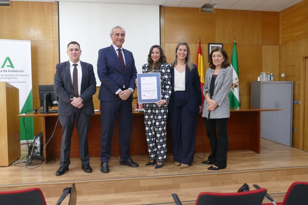 La certificación ha sido entregada en un acto celebrado hoy en la Delegación Territorial de Salud de la Junta de Andalucía en Córdoba, donde el centro recibió la placa acreditativa, junto a otros tres CAITs de la provincia.